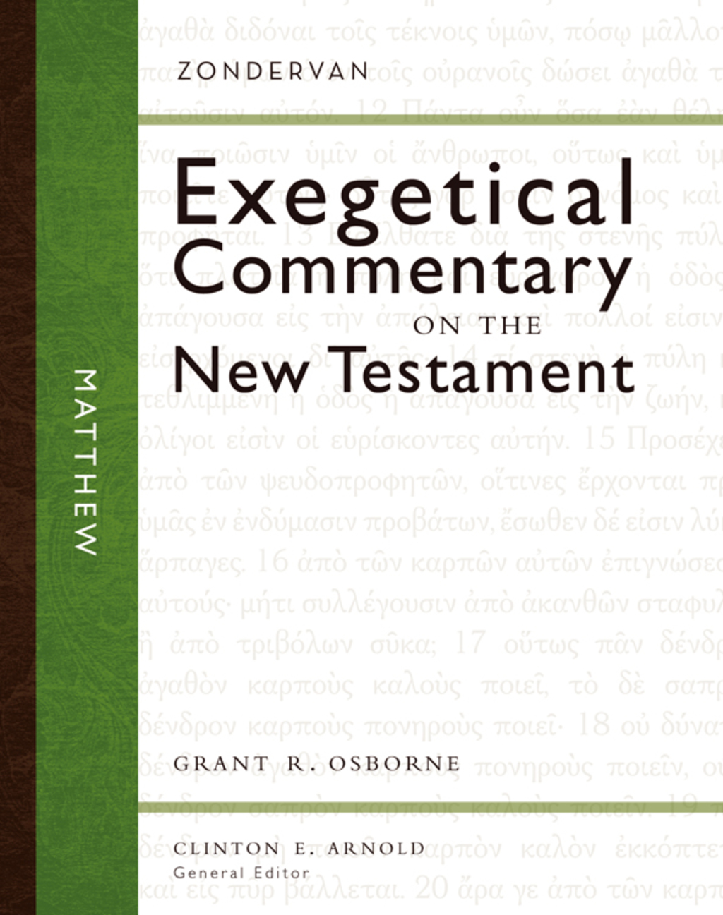Concentrate on the biblical author’s message as it unfolds. Designed to assist the pastor and Bible teacher in conveying the significance of God’s Word, the Zondervan Exegetical Commentary on the New Testament series treats the literary context and structure of every passage of the New Testament book in the original Greek. With a unique layout designed to help you comprehend the form and flow of each passage, the ZECNT unpacks: The key message. The author’s original translation. An exegetical outline. Verse-by-verse commentary. Theology in application.   While primarily designed for those with a basic knowledge of biblical Greek, all who strive to understand and teach the New Testament will benefit from the depth, format, and scholarship of these volumes. In this volume, Grant Osborne offers pastors, students, and teachers a focused resource for reading the Gospel of Matthew. Through the use of graphic representations of translations, succinct summaries of main ideas, exegetical outlines, and other features, Osborne presents the Gospel of Matthew with precision and accuracy. Because of this series’ focus on the textual structure of the scriptures, readers will better understand the literary elements of Matthew, comprehend the author’s revolutionary goals, and ultimately discovering their vital claims upon the church today.