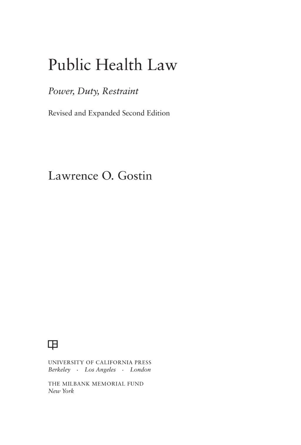 Public Health Law, first published in 2000, has been widely acclaimed as the definitive statement on public health law at the start of the twenty-first century. Lawrence O. Gostin’s definition was based on the notion that government bears a responsibility for advancing the health and well-being of the general population, and the book developed a rich understanding of the government’s powers and duties while showing law to be an effective tool in the realization of a healthier and safer population. In this second edition, Gostin analyzes the major health threats of our times, from emerging infectious diseases and bioterrorism to chronic diseases caused by obesity.