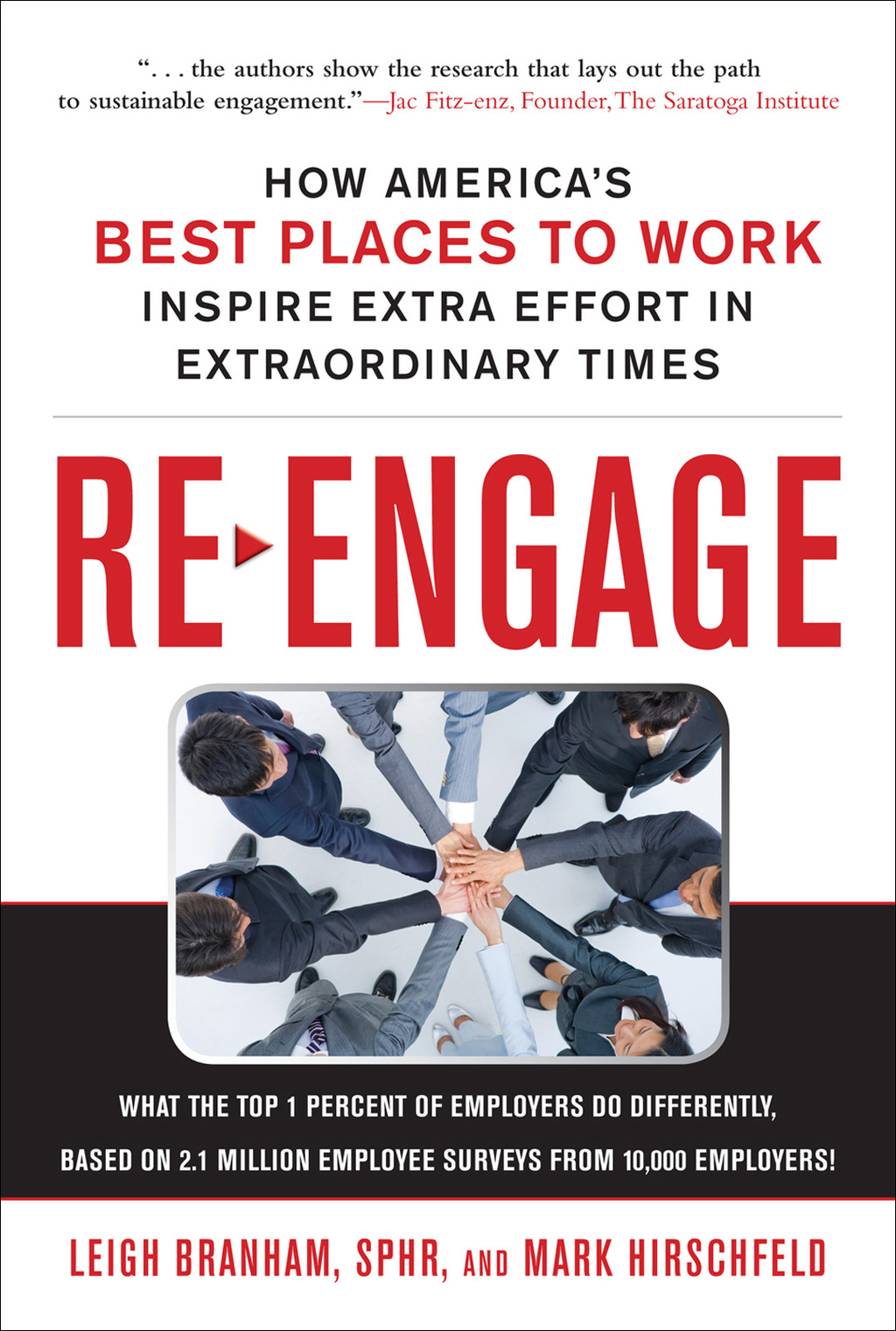 WHY SHOULD I WORRY ABOUT KEEPING WORKERS HAPPY IN A TIME OF RISING UNEMPLOYMENT? Because you can’t afford not to. In an eye-opening survey of 10,000 employers in 43 states, the Best Places to Work are not only the most engaging work environments for employees—they are also the most efficient, productive, and successful. Even in the toughest economic times. WHAT SEPARATES THE “BEST” FROM THE REST? These companies understand and utilize the six “universal drivers” of employee engagement: Caring, Competent, and Engaging Senior Leaders Effective Managers Who Keep Employees Aligned and Engaged Effective Teamwork at All Levels Job Enrichment and Professional Growth Valuing Employee Contributions Concern for Employee Well-Being HOW CAN I GET THE “BEST” FROM MY EMPLOYEES, MY COMPANY, AND MYSELF? Simple. Re-engage them. Praise for Re-Engage “Authors Leigh Branham, SPHR, and Mark Hirschfeld delve into how the best places to work keep employees at all levels engaged and productive, and offer lessons on how to revitalize your own employees’ engagement.” —SHRM/HR Magazine